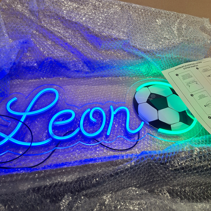 Personalizowany sportowy neon LED ⚽ z piłką nożną i imieniem